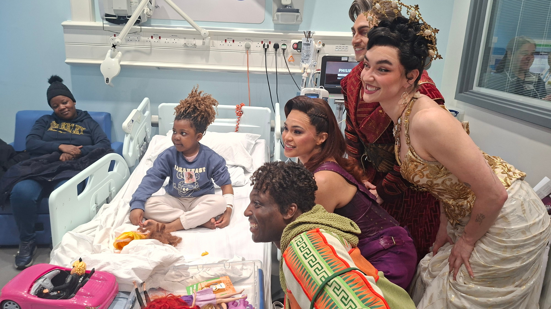 The West End cast of Disney's Hercules the musical visit the young patients at Evelina London Childr...